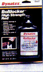 Dynatex® Red High Strength Super Threadlocker Gel is a high strength anaerobic threadlocking material, which cures between engaged threads to form a unitized assembly that resists virtually