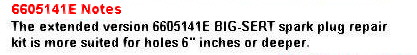 | " OVERSIZED HOLES" For Sparkplugs that have been previously repaired. The outside thread of the BIG-SERT is M18x1.5, the stripped hole should not be larger than 16.3mm or .640 inches. |