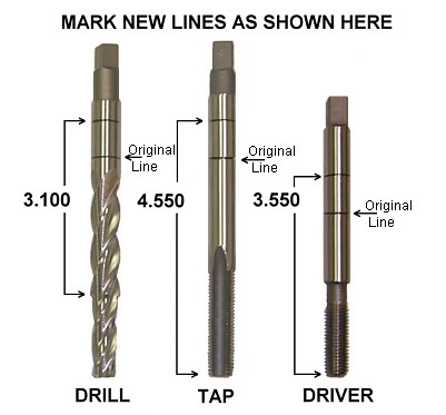 Another thing to keep in mind when repairing a blind hole application is that you "do not" want to bottom out the driver tool on installation. There is a simple method to safeguard against bottoming the tool out, by placing a visual mark the driver tool. BEFORE installing the insert, place the driver tool into the hole and mark the tool at the point it can't enter any further. Use a ink marker or even use a small strip of electrical tape around the driver. This way we know exactly how deep the hole is and there is no danger of bottoming the tool out.