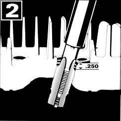 tap new threads. Continue to tap through until the cutting edges are approximately 1/4 inch below surface.