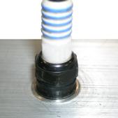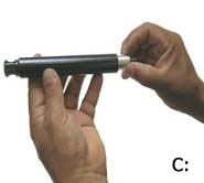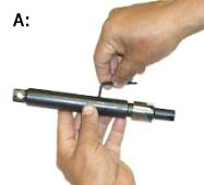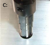 Ream the hole picture C: until black "Stop Collar" touches head. When you start getting close to the stop collar coming in contact with the head, you will want to clean the chips from the reamer so you will have a positive stop on the head without having any chips interfering. The reamer should spin very freely when the collar touches the head. |