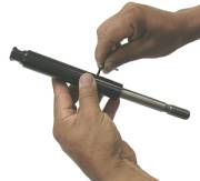 TAP THE HOLE Tap the hole with the wrench provided. There is a pilot at the front of the tap to help guide it straight into the hole. Use contact or break cleaners to thoroughly clean out any remaining chips and oil. |